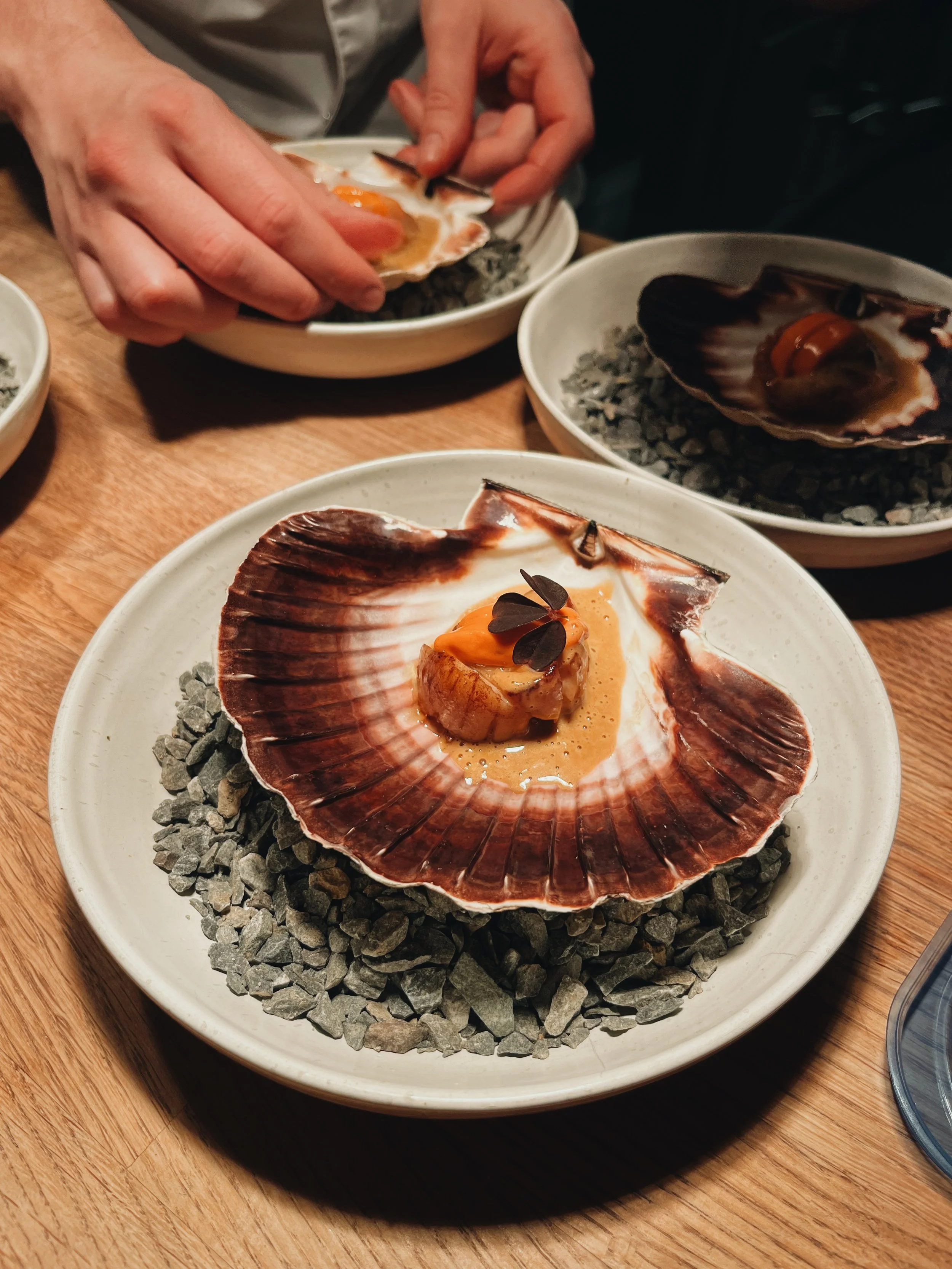 Smaksprøvermeny (1490 kr) - 2 snacks, 2 forretter, 2 hovedretter og dessert